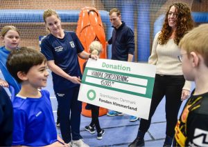 I sidste uge overleverede Afdelingsdirektør Helle Illum Greve, Sparekassen Danmark Randers på vegne af Sparekassen Danmark Fondene en donation til Hornbæk SF Håndbold til indkøb af nyt trænings-udstyr.